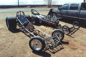 The Nitro Nova lined up next to Stinson's restored Laff Clown digger. |